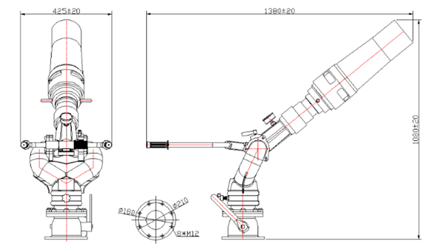 | Modelo de monitor de incendios | Fluir | Rango | Presión nominal | Rotación de tono | Rotación horizontal | Peso |