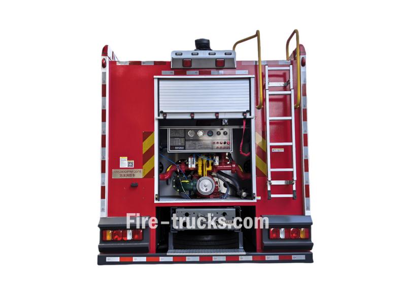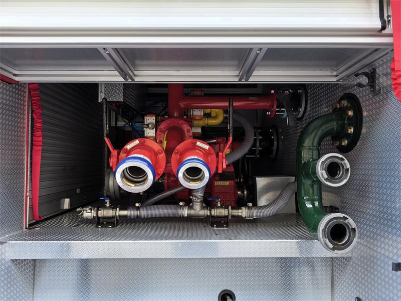 La sala de bombas trasera está equipada con una bomba contra incendios CB10/60-RS y un panel de control. Un monitor de incendios PL8/48 está montado en el techo, ofreciendo largo alcance, amplia cobertura y ángulo ajustable. Este camión de rescate integra funciones de extinción de incendios y rescate, y es especialmente eficaz en la extinción de incendios de clase B, como los de petróleo, lo que lo convierte en un equipo esencial para garantizar la seguridad urbana e industrial.
