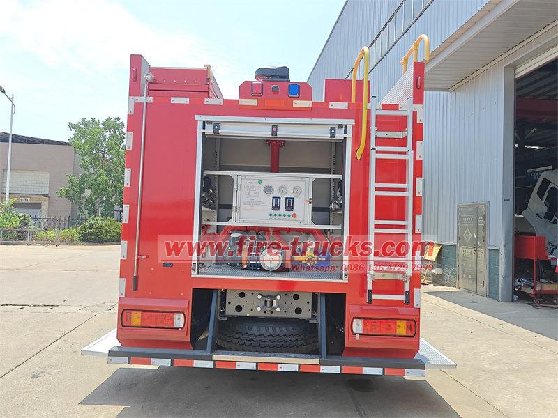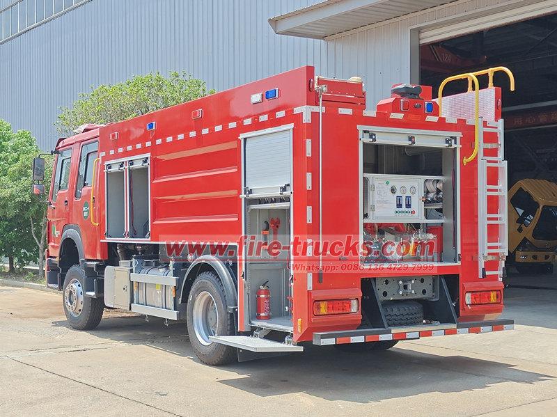 tanker material PP, 4X4, 6X6 drive, RHD driveCamión de bomberos de agua y espuma POWERSTAR Es un vehículo contra incendios de alto rendimiento diseñado para satisfacer las necesidades de extinción de incendios urbanos y suburbanos. Modificado sobre un chasis HOWO de Sinotruk, está equipado con un tanque de agua de 6000 L y un tanque de espuma de 2000 L. Ambos tanques están fabricados con materiales de alta calidad y tratados con recubrimientos anticorrosivos para garantizar su larga durabilidad. Camión de bomberos con tanque de espuma HOWO Está equipado con una eficiente bomba contra incendios y un monitor que proporciona un potente caudal de agua y presión de pulverización. El monitor puede ajustarse a chorro directo o nebulización, adaptándose a diversas situaciones de extinción de incendios.