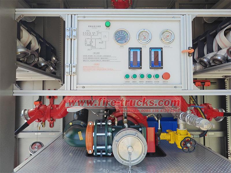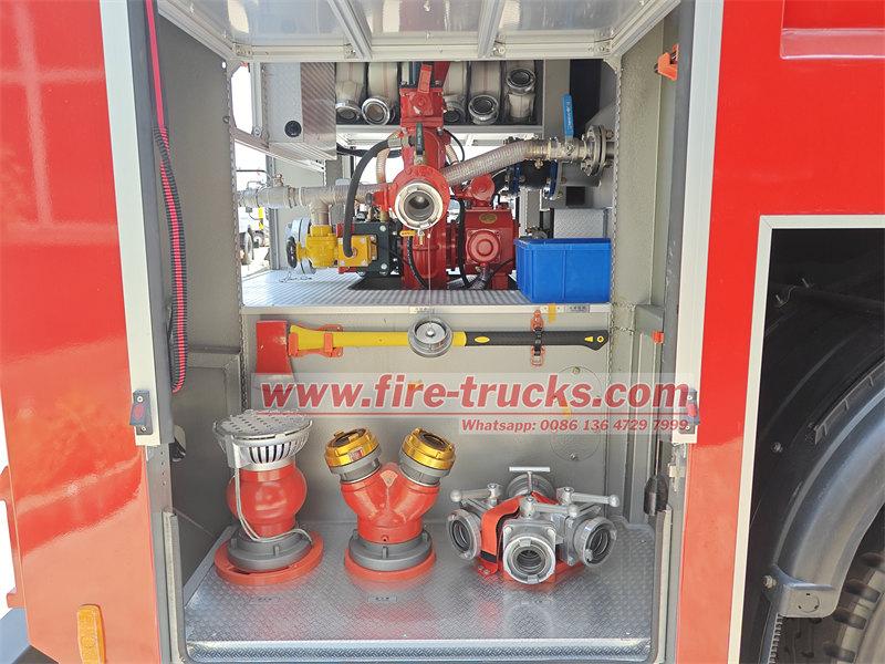 Apariencia 100% personalizada, diseño de la capacidad del tanque cisterna de agua + espuma + polvo seco, sala de equipos para almacenamiento de herramientas contra incendios, también se puede personalizar todo el tamaño del camión .