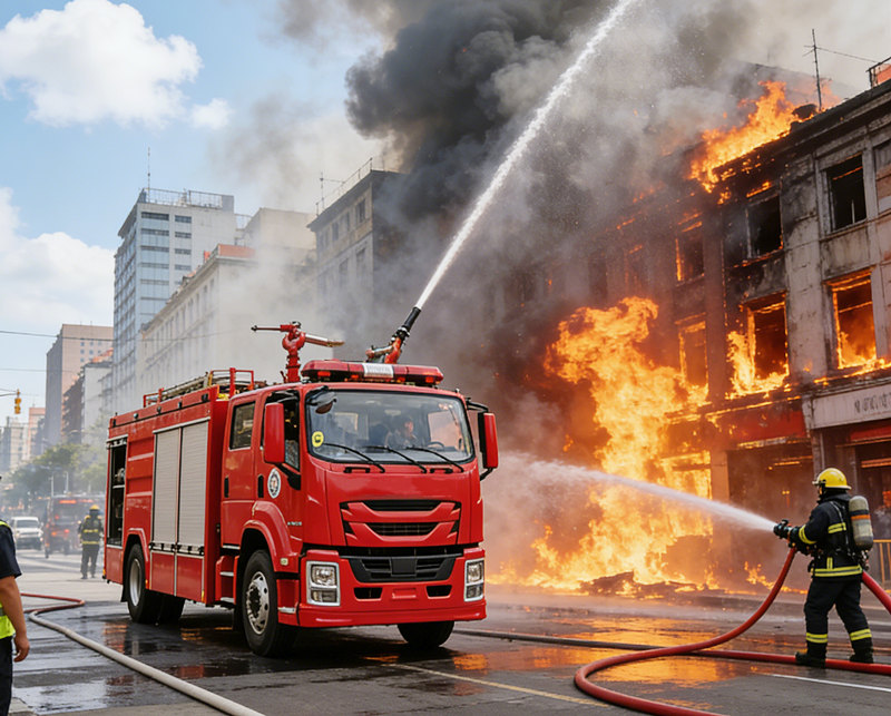 El camión de bomberos de polvo seco Isuzu 4X GIGA es un vehículo especializado diseñado para la extinción de incendios y el rescate de emergencia, integrando funciones de suministro de agua, extinción de incendios y socorro en caso de desastre.