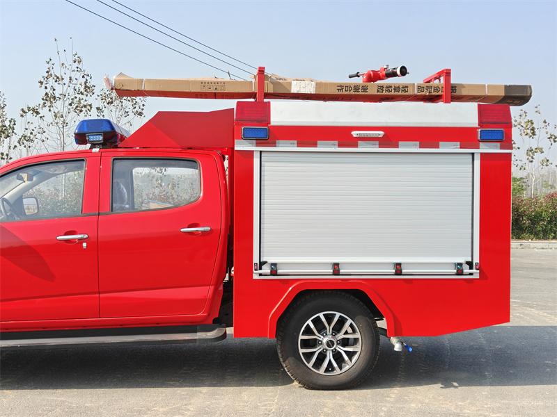 Los compartimentos para equipo están ingeniosamente diseñados a ambos lados del vehículo para transportar el equipo de rescate necesario. El vehículo combina funciones de extinción de incendios y rescate, ofreciendo alta movilidad y respuesta rápida, lo que lo hace ideal para la extinción inicial de incendios y misiones de rescate de emergencia en pueblos, comunidades y zonas con carreteras estrechas.