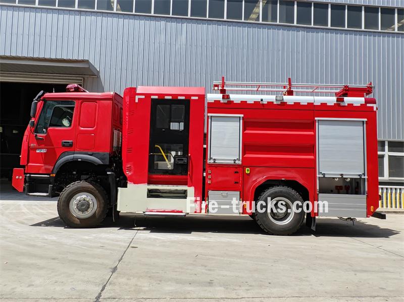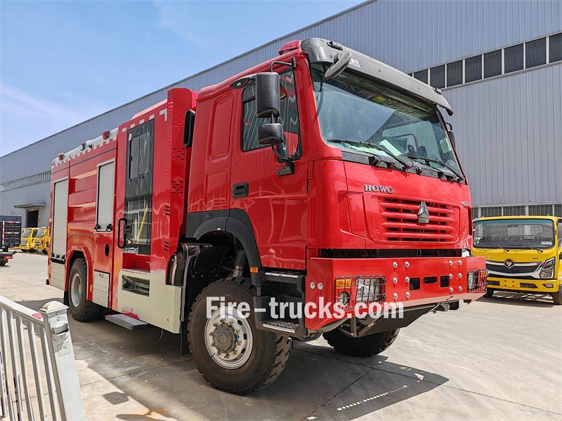 Camión de bomberos HOWO 4×4 Es un vehículo de rescate especializado con capacidades todoterreno, construido sobre el chasis SINOTRUK HOWO 4WD. Está equipado con una bomba contra incendios de alta potencia, un tanque de agua, un tanque de espuma, un monitor de incendios y equipo de rescate modular. Este vehículo es adecuado para diversos escenarios, como la extinción de incendios forestales, la exploración petrolera, las operaciones de rescate en desastres geológicos y la extinción de incendios en zonas urbanas estrechas. Puede configurarse con diversos sistemas de extinción de incendios, como agua, espuma y polvo seco.