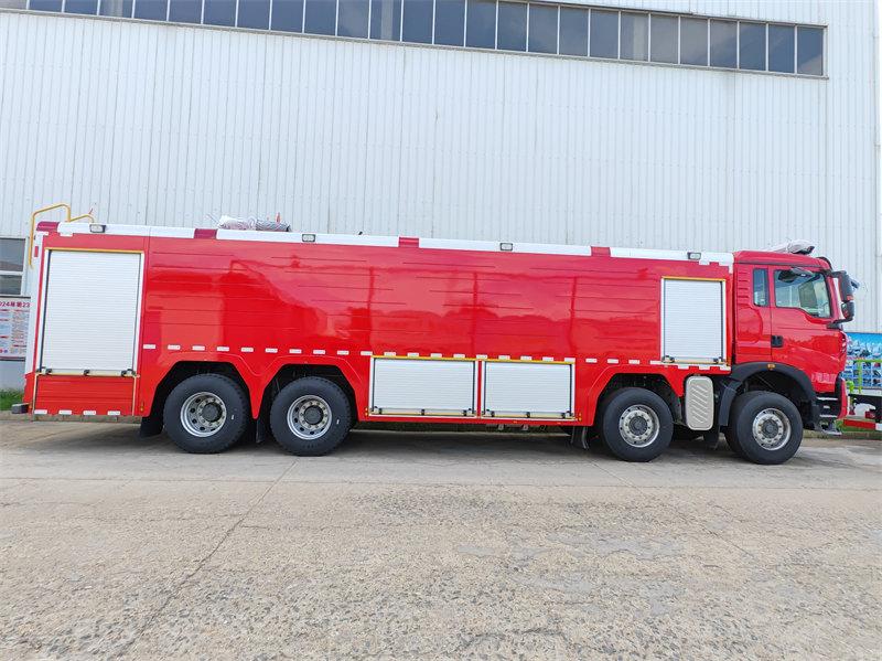 El camión de bomberos de espuma HOWO 8×4 es un vehículo de rescate de emergencia de gran tamaño, construido sobre un chasis SINOTRUK HOWO de alta resistencia, que integra un tanque de agua, un tanque de espuma, una bomba contra incendios y diversos equipos de extinción de incendios y rescate. Impulsado por un motor de 460 HP, cuenta con un tanque de agua de 20 000 L y un tanque de espuma de 4000 L, equipado con un monitor de incendios de alto caudal capaz de lanzar agua o espuma a una distancia de hasta 75 metros. Con un potente rendimiento, excelente movilidad y un completo equipamiento, realiza eficazmente tareas de extinción de incendios en zonas urbanas e industriales.