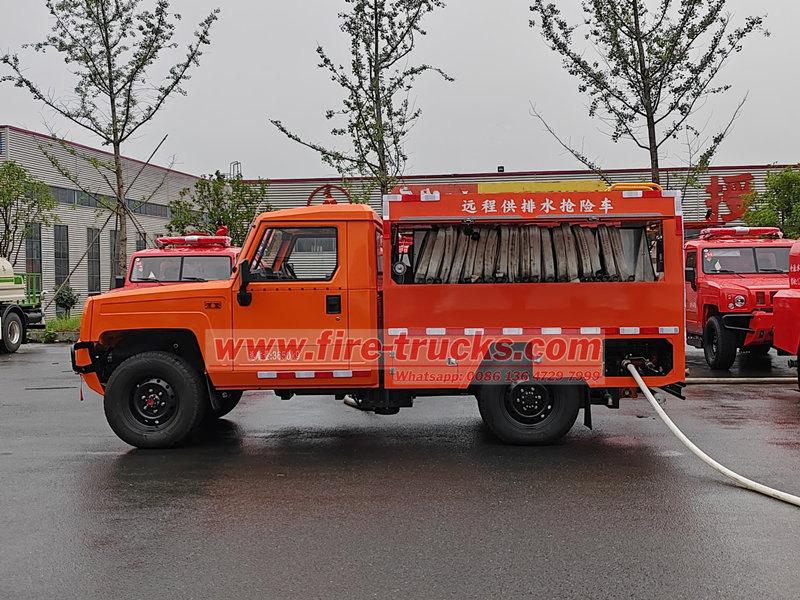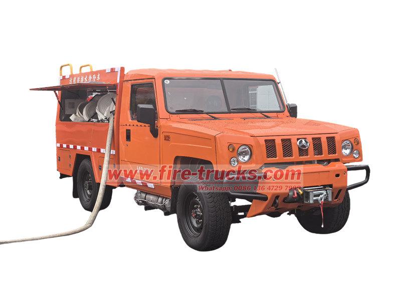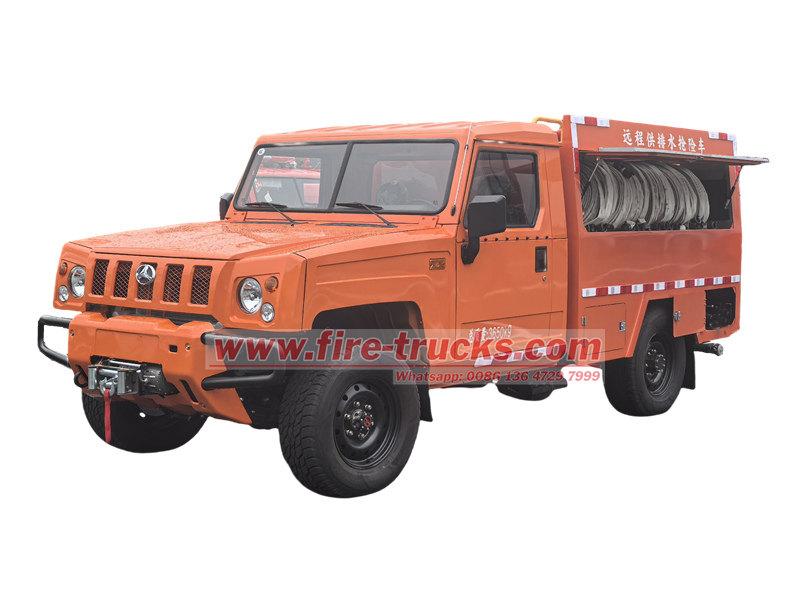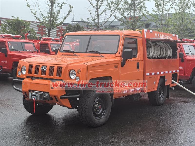 Está diseñado para la contención temprana de incendios de pequeña escala. Cuenta con un chasis todoterreno con tracción en las cuatro ruedas, iluminación integrada y sistemas remotos de suministro de agua, impulsado por una toma de fuerza (PTO). Puede desplegar mangueras de agua a más de 3000 metros, con una altura de elevación superior a 500 metros y un alcance de chorro de agua de ≥30 metros. El vehículo cuenta con sólidas capacidades todoterreno, incluyendo una profundidad de vadeo de 0,6 metros, un margen de franqueamiento de obstáculos de 0,35 metros, un ancho de cruce de zanjas de 0,55 metros y un ángulo máximo de conducción en pendiente lateral del 40%. Se utiliza ampliamente para patrullar zonas montañosas, de baja altitud, valles fluviales y bosques para detectar incendios de forma temprana y extinguir incendios de pequeña escala.